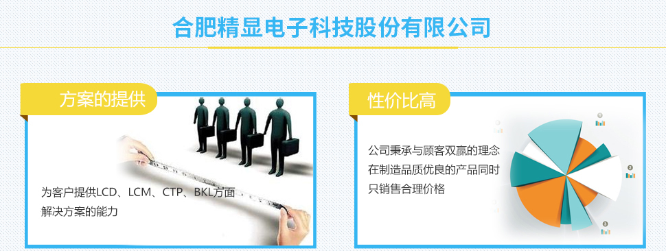 ?合肥精顯電子科技股份有限公司成立于2012年,由液晶行業(yè)知名企業(yè)廈門精顯電子有限公司投資建設(shè),是一家研發(fā)、生產(chǎn)、銷售高品質(zhì)液晶屏(LCD)、液晶顯示模塊(LCM)、背光(LED)、電容式觸摸屏(CTP)等節(jié)能環(huán)保產(chǎn)品并能為顧客提供解決方案的高新科技企業(yè)。 ?公司占地55畝,擁有建筑面積超過(guò)20000平米和潔凈廠房5400平米。 ?公司擁有一個(gè)超過(guò)15年以上LCD行業(yè)運(yùn)營(yíng)制造經(jīng)驗(yàn)的團(tuán)隊(duì)。 ?公司獲得研發(fā)專利20余項(xiàng)。 ?公司通過(guò)C-TPAT認(rèn)證,ISO9001:2008認(rèn)證,產(chǎn)品通過(guò)了ROHS、REACH。 ?我們產(chǎn)品廣泛應(yīng)用于智能儀表(水表,電表,氣表)、家電、儀器儀表、計(jì)量器械、文教 器具、UPS電源、智能手機(jī)機(jī)、平板電腦等電子產(chǎn)品的顯示和控制。目前我們已樹立了良好的品牌形象,并與眾多公司(如GE, Ja...